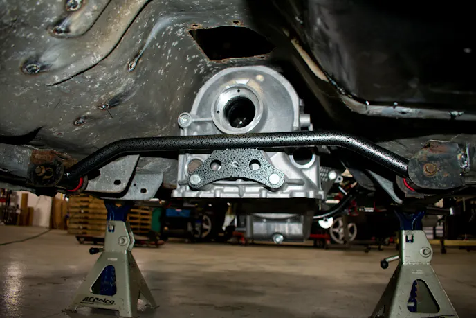 Fitment of the Team Z Motorsports K-member system into the Fox chassis with Godzilla on top was not as difficult as you might expect.