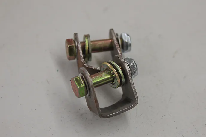 “On a factory-style rearend the bolt actually runs perpendicular to the housing, so it puts the shock into a bind when you try to roll pinion angle into the factory-style torque arm. The relocation bracket turns the mounting bolts for the shock parallel to the housing. This allows the shock to pivot on the bolt using the bearing, so the shock won’t bind,” Jeffrey explains.