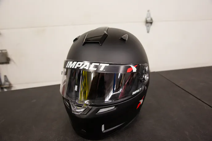 Taking everything O’Connor said into consideration, we elected to use Impact’s Phenom SS helmet. The Phenom SS is lightweight thanks to its Carbon-Kevlar composition and it has a large eye port too. These are two important features since we wanted a helmet that would be safe, and allow us to have a wide field of vision for racing at the stripe.