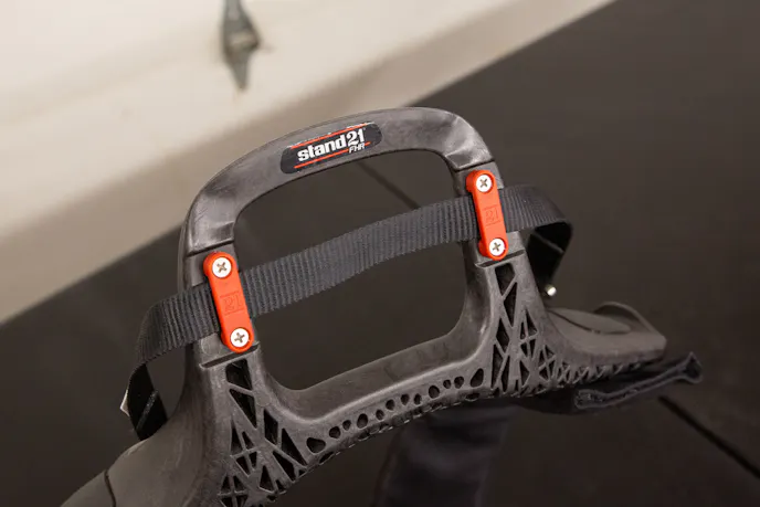 “The latching link style mechanism can be a little cumbersome to put together because you have to feed the tang through all of the different hoops, and then the tang goes through the lever. If you’re getting strapped in with your helmet on it can be difficult to look down and make sure everything is going through the right way. There is the slight chance that you may miss one of the hoops which could be catastrophic if something happens during a run.”