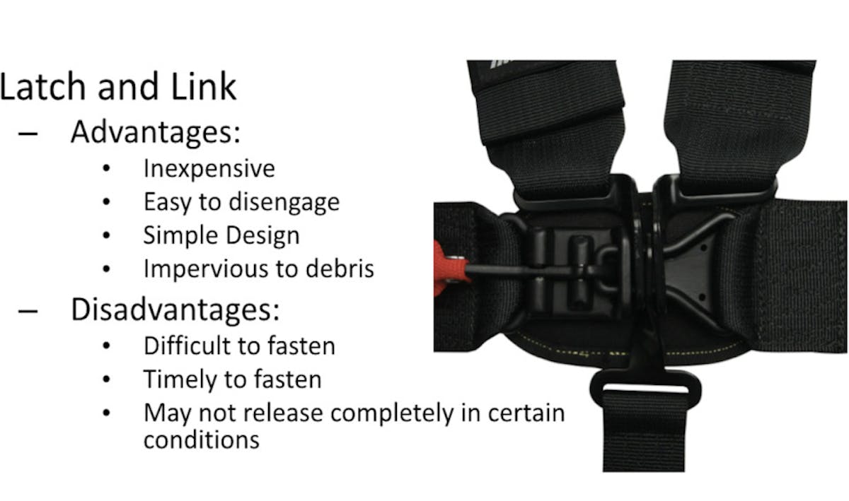 “A restraint assembly also utilizes two types of hardware,” O’Connor says. “The adjustment hardware is used to alter the length of the individual straps to fit the driver. Mounting hardware secures each strap to the vehicle.”