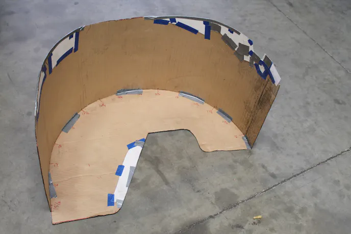The team at PMR utilizes this very method for mocking up the tubs before doing anything with the actual tubs, by creating what is essentially a full tub out of cardboard, using the exact dimensions of the tub, and cutting it to fit along the framerail and the quarter panel. The team then laid the cardboard cutout over the tub and traced along the edges to give them a cut line.