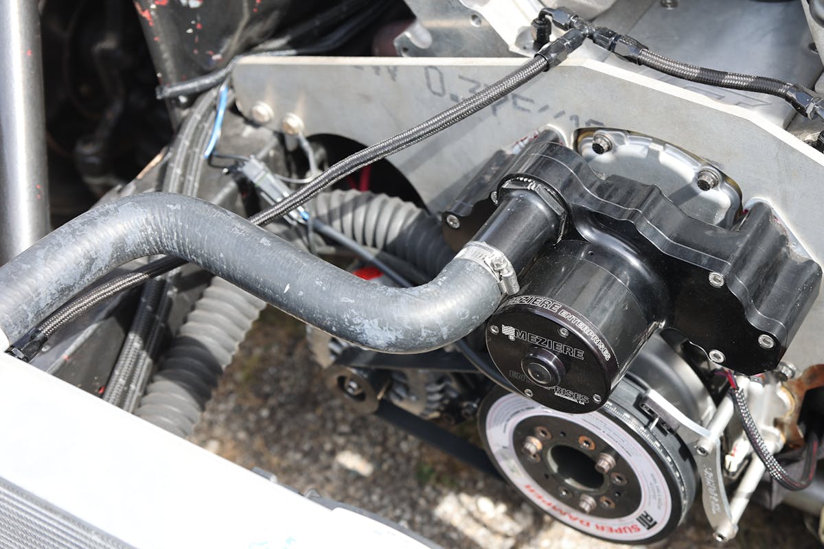 “Where rules and conditions permit, electric water pumps can be a solution with multiple benefits,” Meziere explains. “The constant speed of an electric pump eliminates high- and low-RPM problems. The bonus is that you can run the pump when the engine is shut off. You should never run your engine without the water pump on because hot spots can form in the cylinder head before your temperature gauge begins to register. When an electric water pump is mated with a good electric fan, you can easily regulate water temperature for consistency and rapidly cool the engine between rounds after shutdown.”