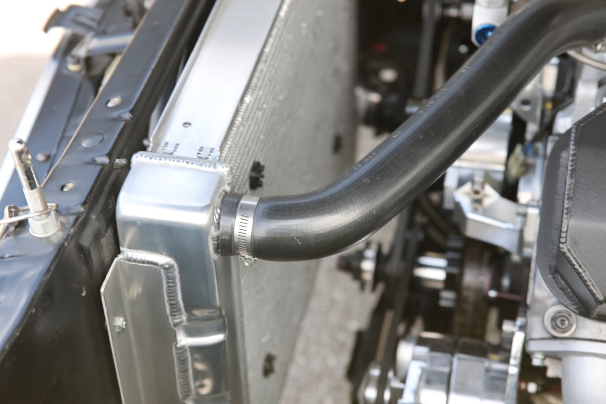 “How the vehicle will be used really does matter a lot. If you’re building a street/strip car that will see some spirited driving, with the possibility of no cool-down period, you need to be mindful of how you size the cooling system’s lines. It’s best to use big lines that are comparable to the OEM size that the vehicle came with. Keep in mind that the lower hose on a stock V8 usually has a 1.75 or 2.40 square-inch inside area. The stock top hose is usually 1-5 or 1.7 square-inch inside area,” Meziere says.