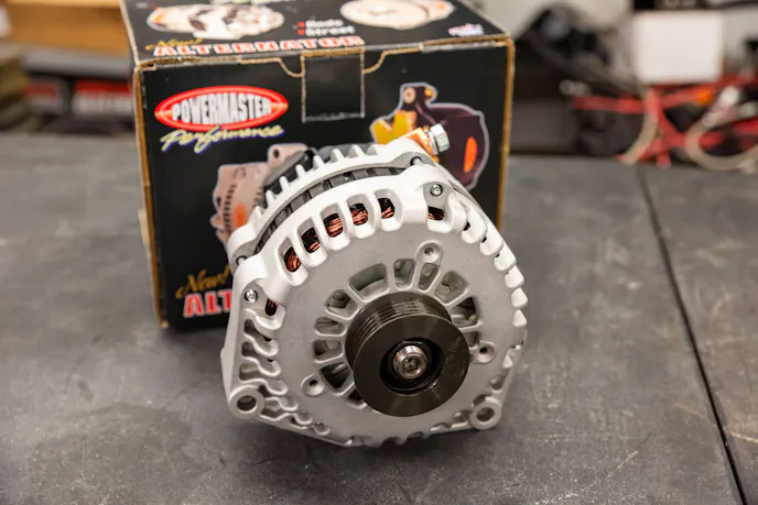 The engine is being controlled by a FuelTech ECU, so our electrical requirements are going to be higher than your average bracket car. Since there could be situations where the car won’t see a battery charger every round, an alternator that could keep our battery charged was on our list of things to get. The car is still using a 12-volt electrical system, so Powermaster suggested we use one of its larger 12-volt alternators.