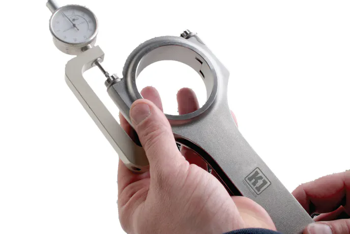 We looked at an example K1 big-block Chevy connecting rod with 7/16-inch rod bolts. K1 Technologies provides stretch specifications with each connecting rod set purchased. The instructions for this application noted a necessary stretch of .0060- to .0065-inch when tightening the bolts.