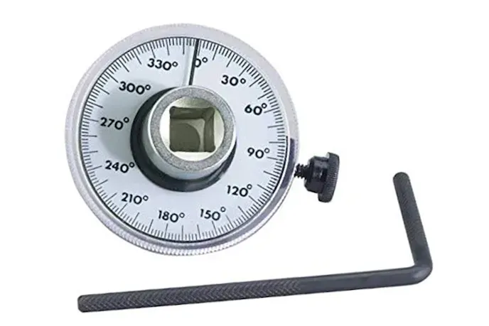 Following pre-torque, you use an angle gauge and turn the bolt a prescribed number of degrees to stretch the bolt properly. This method uses the highly accurate pitch of the bolt thread to control the amount of stretch.
