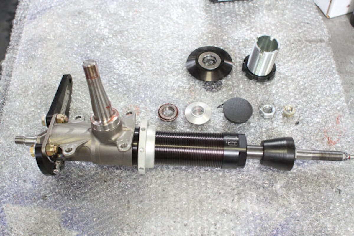 Quarter-Max, the mail order division of the world class chassis builders at Rick Jones Race Cars, have left no stone unturned with its threaded strut mount kit, providing virtually everything needed to complete your strut install except the strut itself, a set of lower control arms (which they sell), and the structural gussets for the outer mount (which they also sell).