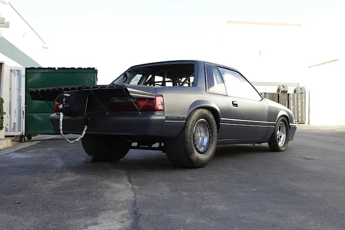 The Steve Morris-built small-block Chevy that rests between the framerails is backed by an ATI two-speed Turbo 400 transmission filled with their best parts. The chassis of the Mustang has been outfitted with parts from Skinny Kid Race Cars, including their K-member and A-arms, along with Strange Engineering double adjustable struts. Inside, Evil 8.5 has been wired with some of the best parts RacePak has to offer, including their Drag SmartWire system that works with a Holley Dominator ECU that controls the EFI system.