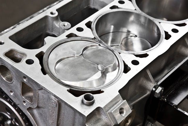 While a slick cylinder wall finish is rather ordinary by race engine standards, the other friction-reducing tricks SAM Tech’s LS7 has up its sleeves are anything but. The NHRA rulebook strictly regulates piston design by prohibiting gas ports and specifying a minimum ring groove width. As a clever workaround, SAM Tech replaced the COPO LS7’s standard .043-inch top and second rings with thinner .027-inch Total Seal units. The reduced surface area offered by the thinner rings cut down on friction and provide superior conformability to improve cylinder seal.