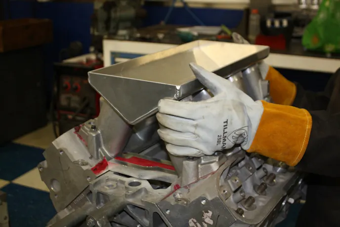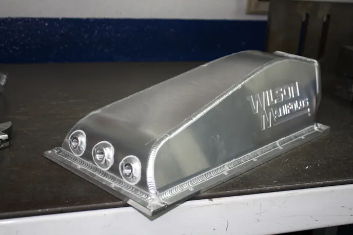 Luckily for us, we had the phone number of our pals at Wilson Manifolds, and specialty sales manager and manifold expert Dave Secunda. Working with Secunda, we devised a plan for BlownZ’s Hi-Ram. The goal was to retain the Holley Hi-Ram intake runners construction and design, but to enlarge the plenum, and build a new sheet metal top for the Hi-Ram. Essentially, building the ultimate Hi-Ram. Since we’re planning on adding a ProCharger F-1X to our engine combination shortly, we told Wilson that we needed to be able to make up to 1,600 hp. So, consider this a Holley Wilson Hi-Ram designed to support 1,600 plus horsepower.
