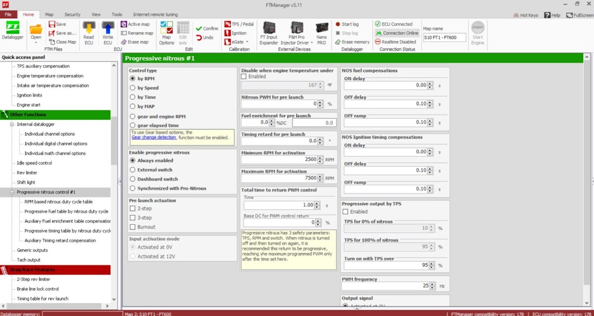 Improved control can improve repeatability in any system, and controlling the transmission is no exception. FuelTech ECUs allow you to control how you stage with your transmission, how the transbrake works, and the actual gear shifting process.