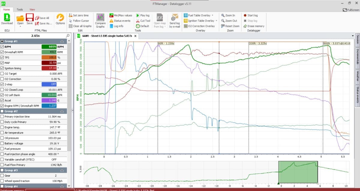 Along with all the convenient, built-in control functions, the FuelTech ECU line is completely capable of being a standalone dashboard and data-logger, while giving the user the ability to grow into controlling more and more with the ECU as they get comfortable with it. Having the ECU and data-logging program integrated makes it easy to quickly view data between rounds, and make adjustments all in one place.”
