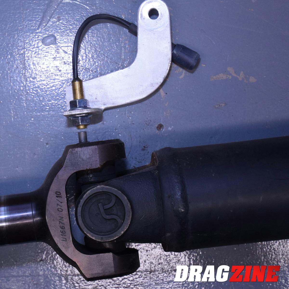 The driveshaft speed sensor is a two-wire circuit connecting to one another between a magnetic pickup and the tach. Customers must custom fabricate a mount that locates the sensor within .2-inches from the driveshaft magnets. It goes without saying that great care is necessary when fabricating your driveshaft sensor mount so as not to allow it to flex or vibrate and come into contact with the spinning driveshaft magnets.