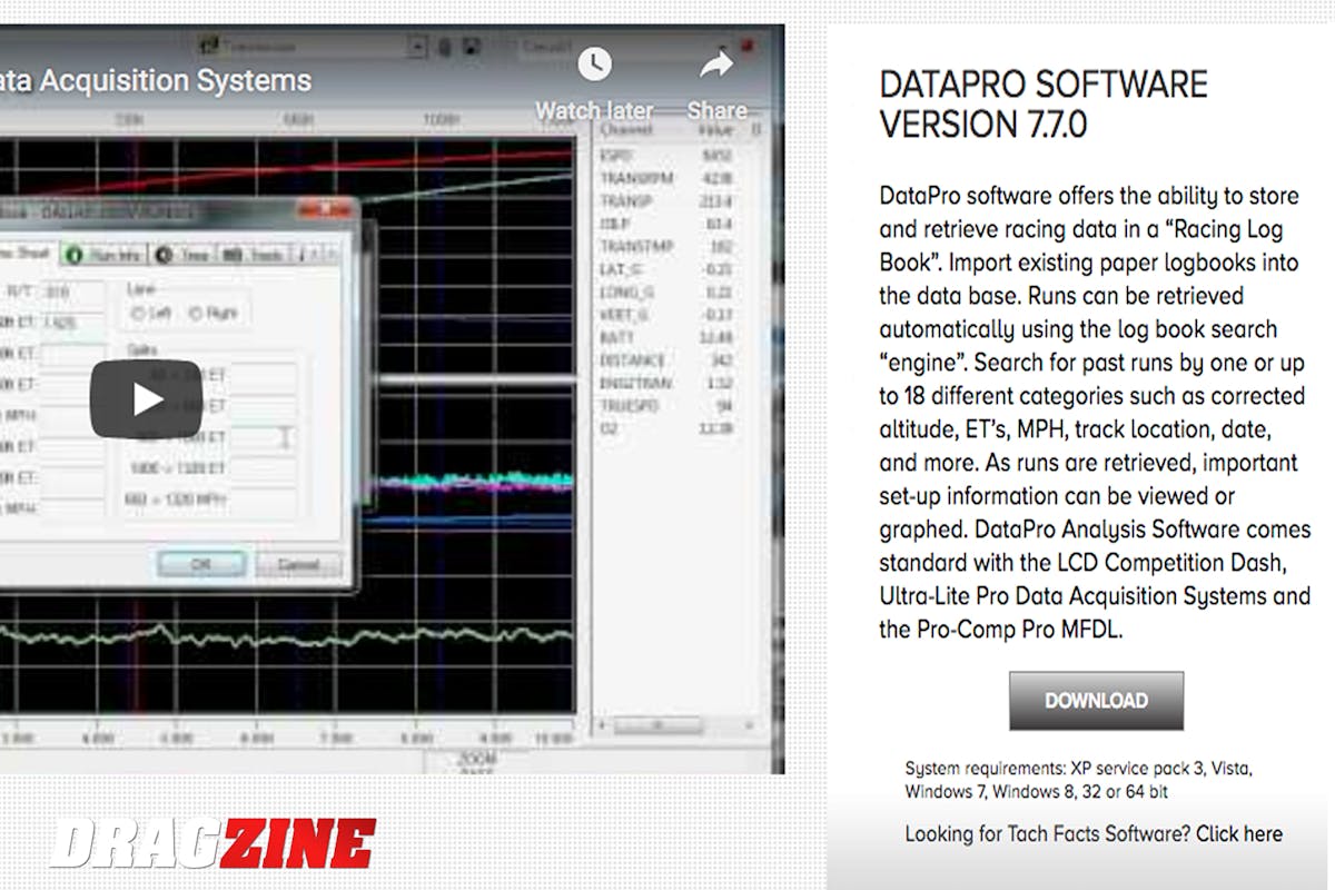 The tach will store up to four passes; if you’re meticulous about storing each pass, it takes as little as 5-seconds to download a pass. The Data Pro Software is a “racing logbook.” You can also manually add 18-additional categories of data into each recording, such as corrected altitude, e.t., MPH, track location, date, and more.
