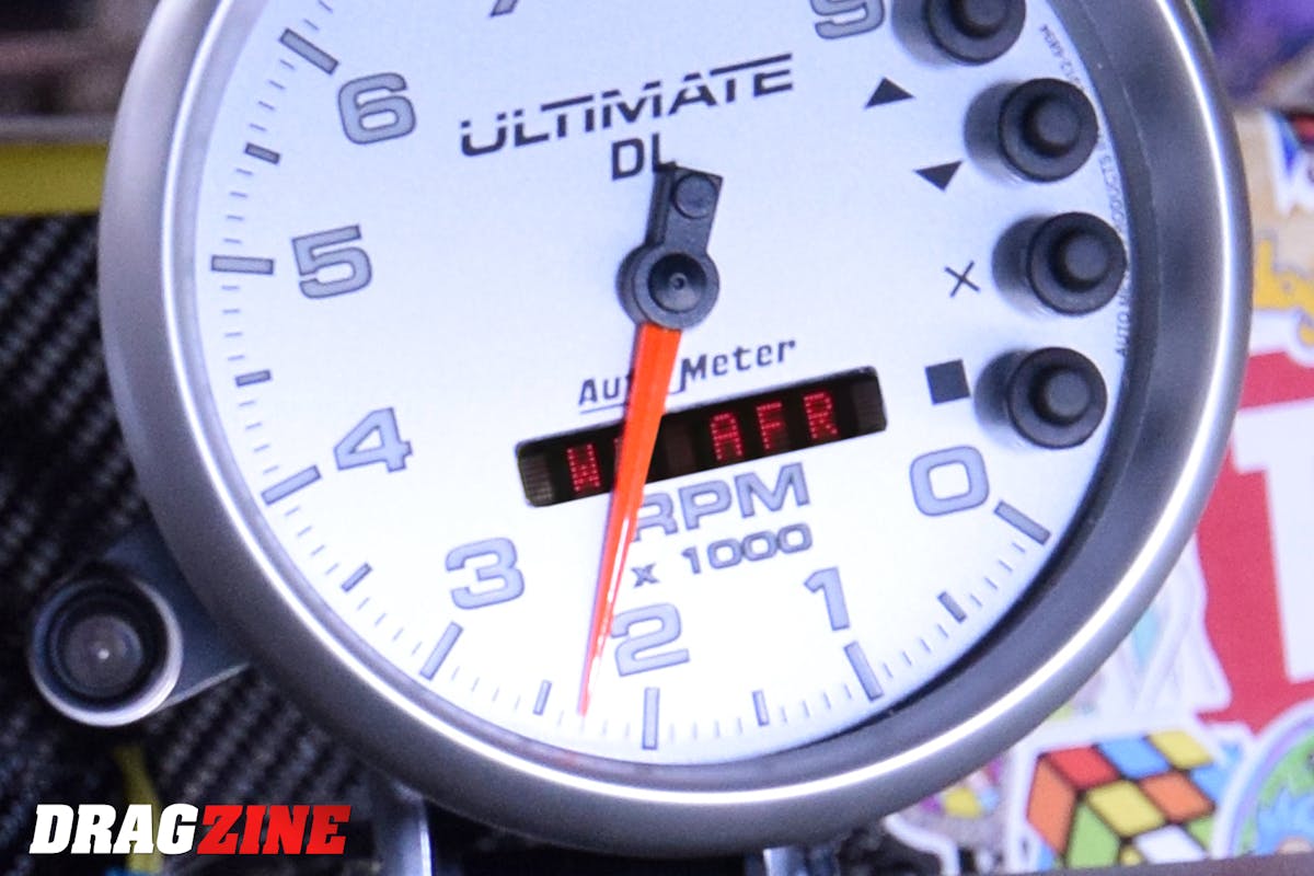The Ultimate DL records more than just engine and driveshaft RPM; within the tachometer body, it also records wideband air/fuel ratio and a user-definable pressure channel. It also includes three-axis g-force meters to show exactly how the vehicle is moving down the track.