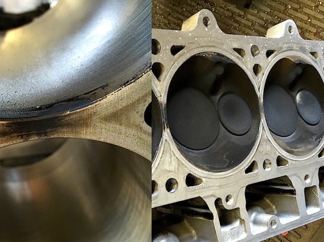 Another caution is that MLS gaskets can’t be used with blocks or heads that have still have O-rings or receiver grooves. On engines that have been O-ringed in the block, the O-ring can be machined down flush and the deck resurfaced.