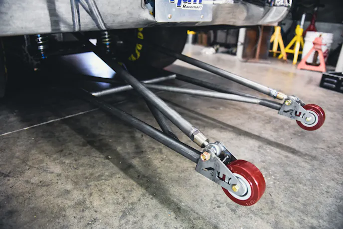 Hoosigian continues, “Most cars really don’t need one, the guy just likes how it looks. So when you’re determining how long the bars need to be, your question should be if it will fit in the trailer, and do you want to be tripping over it while working on the car in the pits. A lot of people think the long wheelie bar is cool-looking, but it could be a real pain, especially if you don’t need it.”