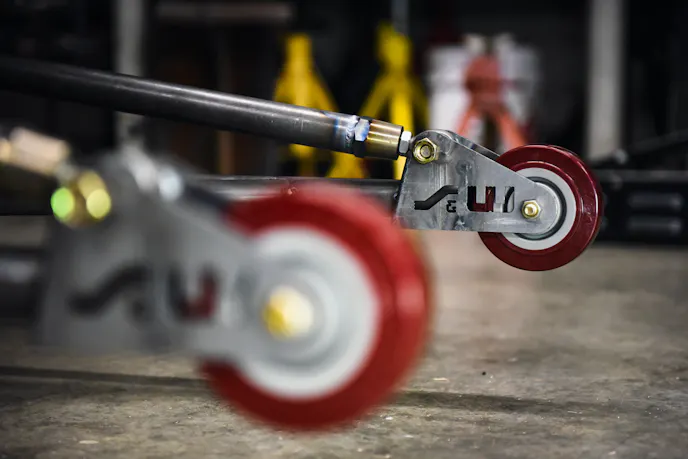 Now, you could obviously attempt to build your own wheelie bars from scratch — get some 1-1/4 and 1-1/8 tubing, cut it all to length, find your angles, and build the bars…but then you’ll have to source the wheels, the threaded rod ends, fabricate the wheel brackets and the housing brackets. At that point, you’re much better off buying a complete kit from the get-go from S&W and simplifying the whole process (and likely saving yourself money). The kit we chose is S&W’s un-welded kit with quick adjustments (Part# 40-384U), which comes at 85-inches in length out of the box so you can trim it down to length for virtually any vehicle.