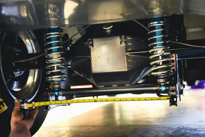 “When you’re putting a set of bars on a car, when the car is at level ride height, the wheelie bar is a certain distance off the ground — there isn’t really one number that’s the right or wrong number,” he says.