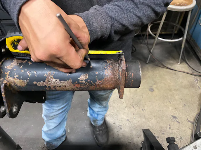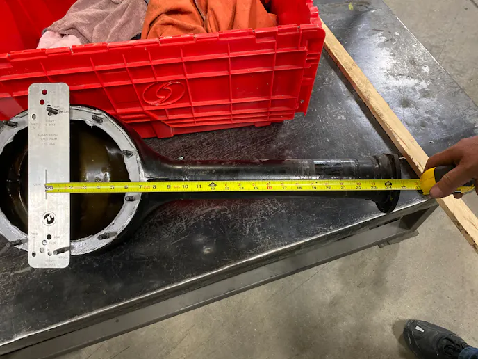 If you don’t have a pinion gauge tool in your arsenal or at your disposal, you’ll measure the old-fashioned way to the center of the pinion hole or pinion nut from the left and right housing ends (what Moser refers to as the F&G measurement). As a key check of your work, these numbers should total up to the entire length of your housing — if they don’t, your measurement is off on one side or the other. Once your numbers check out, keep track of the value for the driver’s and passenger side, and Moser can utilize those to build-in your pinion angle when narrowing the housing.
