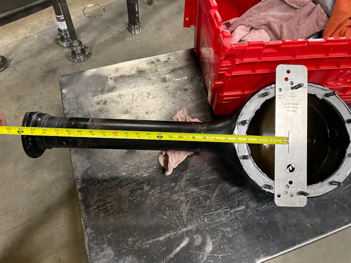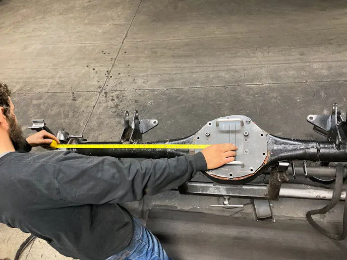 “We know some people aren’t confident in the measuring or the measurements they need to supply. There’s more than one way to skin a cat when it comes to getting those measurements. The easiest for a lot of guys, if you’re going to narrow the housing and you know what size tire you want on the back of it, is to go ahead and remove the rearend, put the tires and wheels under the car, and measure back-of-wheel to back-of-wheel, and give us that dimension. That will tell us where the housing needs to be, and we can figure backwards from that with a few more bits of information.”