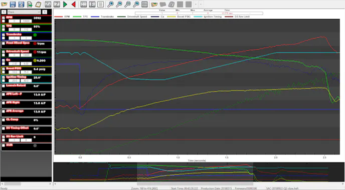 The system made it easy to get the car up and running. However, we retained the sophistication needed to use features like Coil-On-Plug, 16 injectors, and advanced tuning tables. Last, unlike most EFI systems, Holley is constantly working on its software. The team frequently adds new features and releases them in major versions for free. These updates do not require hardware modifications…only simple updates to the ECU that are downloaded over the internet. The current version, V5, includes options to incorporate some of the latest traction control technologies used in drag racing.
