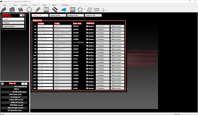 The Holley software broke out engine management into what they call Individual Configuration Files, of ICFs for short. These ICFs group related parameters in sections that allow adjustment of the parameters in a single location. For example, we modified how the engine is fueled, directly in the fuel ICF. Spark? There is an ICF for that, as well. Some of the more common ICFs include fuel, sensor, system, idle, spark, inputs & outputs (I/O), and the very unique to Holley, advanced ICF. The ICFs are also modular, meaning we could save them individually and load them into other tune-up files as desired.