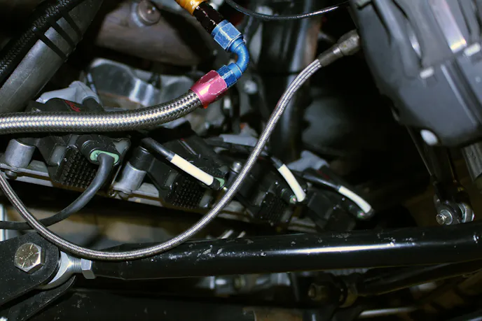 One of the neatest changes we made when switching to the Holley EFI was going to a coil-on-plug,” or more accurately, “coil-near-plug,” ignition setup. When making fire, the Holley can accommodate a number of ignition setups, including most popular CDI/digital ignition controllers like the well-known MSD spark boxes. We opted to forgo the MSD and skip the mechanical parts like the distributors more commonly found in race cars. Coil-On-Plug (COP), or in our case, coil near plug (CNP), is just as it sounds.