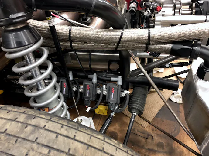 One of the neatest changes we made when switching to the Holley EFI was going to a coil-on-plug,” or more accurately, “coil-near-plug,” ignition setup. When making fire, the Holley can accommodate a number of ignition setups, including most popular CDI/digital ignition controllers like the well-known MSD spark boxes. We opted to forgo the MSD and skip the mechanical parts like the distributors more commonly found in race cars. Coil-On-Plug (COP), or in our case, coil near plug (CNP), is just as it sounds.