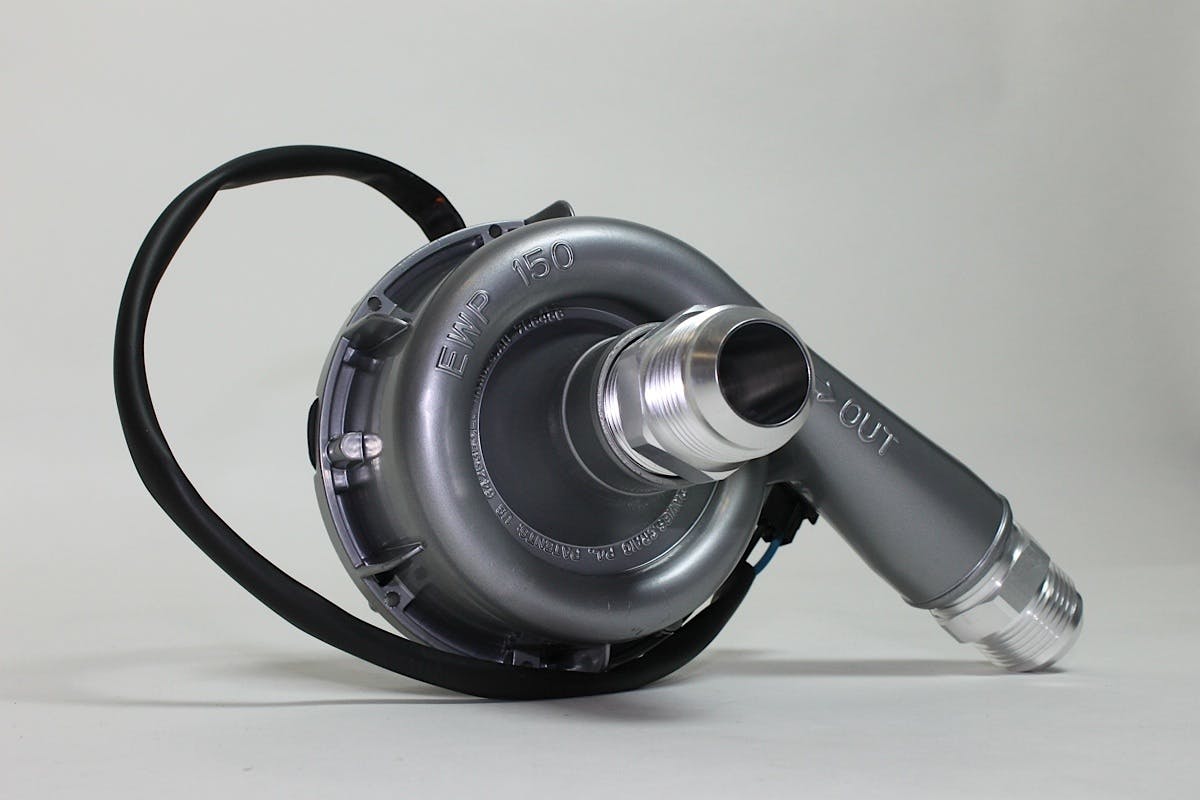 According to Davies Craig’s Josh Backes, “Efficiency is key — the design of the pump and the high-efficiency Panasonic motor only draw 10 amps of electrical power. The motor is set into the pump body so that the coolant of the engine keeps the electric motor cool. It also has a double seal to keep the water in the pump. It only weighs 2.5 pounds, and can even be hung off the bottom radiator hose in a street application. We also offer a controller that will bring the draw down to 7-8 amps.”