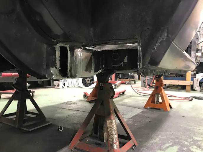 “The double frame rail, especially in a car like this, is to support the engine. It just locks the engine into the chassis better,” Engling begins. “Since it’s a stock suspension car, it’s less about supporting the chassis, because the rear suspension isn’t hooked up to it. But it’s mainly to keep the car from twisting…it’s tied really hard into the mid-plate, and the mid-plate is what does all of the work, not the front motor plate.”