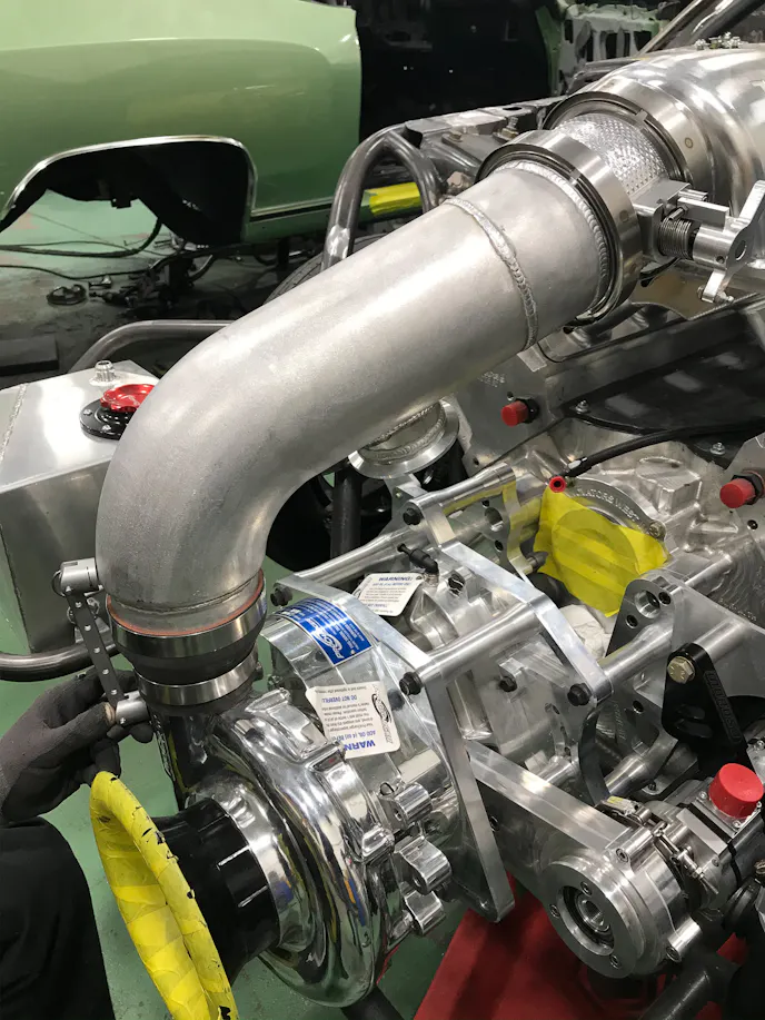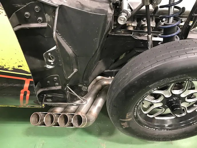 “Zoomies on a supercharged car allow them out-sixty-foot any other car…because of the downforce that the zoomie creates,” he explains. “We can leave harder without having wheelstand problems. On my car, with a screw blower, the front suspension compresses almost 3/4-inch just by going up on the chip on the starting line. There was a long period of time where people said exhaust velocity doesn’t do anything, but they’re completely wrong. We learned that way, way back, even with turbo cars. That’s why we had “bullhorn” exhaust on V-bands, so we could point them up depending on track conditions.”