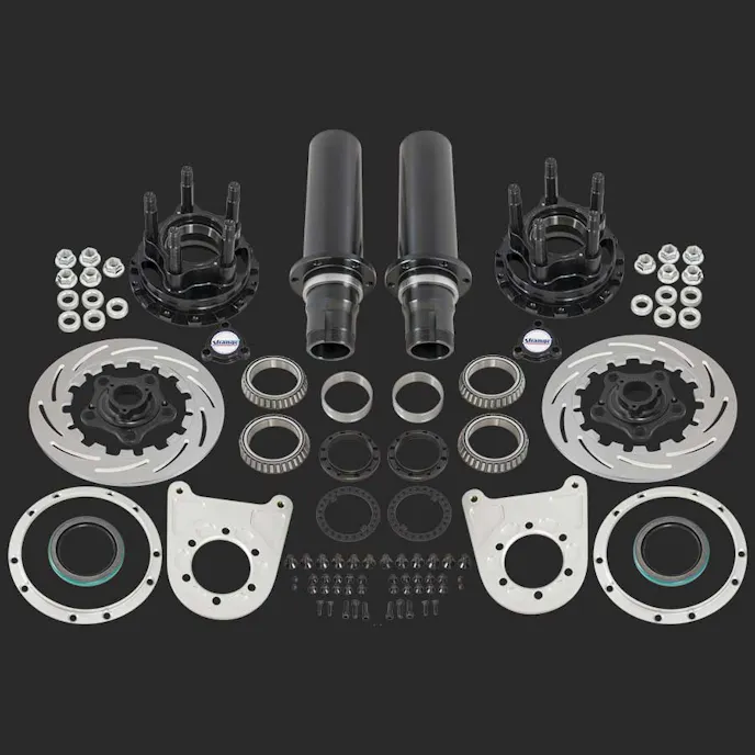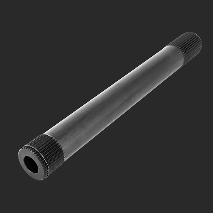 These sport a .875-inch I.D. hole bored the entire length of axle, hobbed 40-tooth spline count with a 45-degree pressure angle on both ends, involuted splines provide full surface contact area, and are heat-treated and thru hardened for hardness, ductility, and torsional strength.