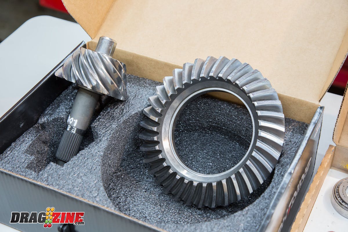 Based on our elapsed time goals and the need to drive the car on the street, we opted to go with a 3.50:1 gear ratio for the Red Dragon. US Gear suggested we go with a ring and pinion from their Lightning line of gears, and they shipped one out to us right away. The great thing about this kit from US Gear is that it comes with everything you need to install the gears from shims to bearings.