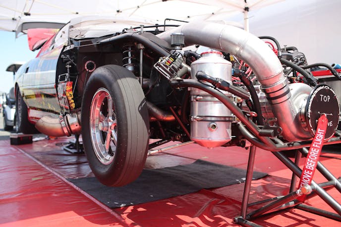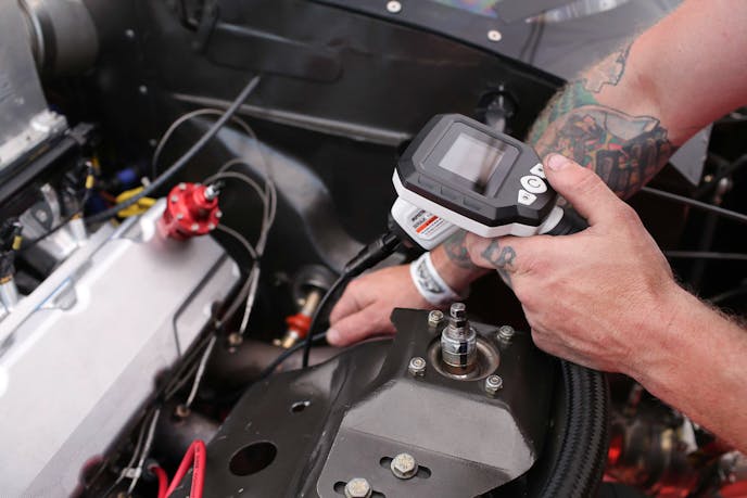 “If we leave our tires sitting in the sun for five minutes, it’ll raise the tire pressure three pounds,” says Goude. “If we’re in the lanes and there’s an oil down or something, the tires are going to be five to six pounds higher. Once we do the burnout it’s going to be exponentially higher, so by the time we launch the car, you could have a 10 pound increase in tire pressure. That’s just dangerous.”