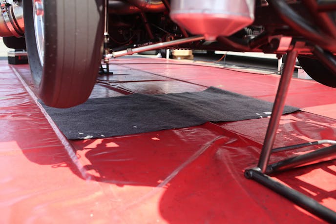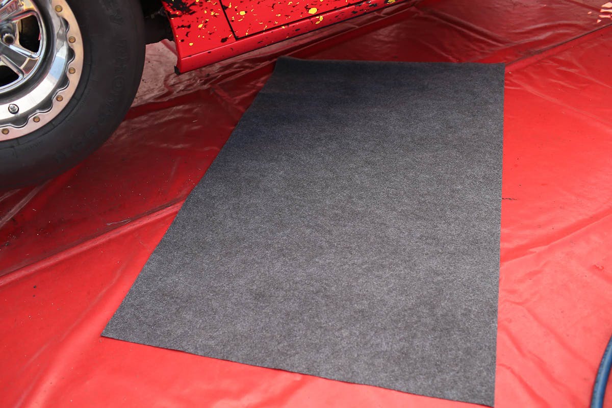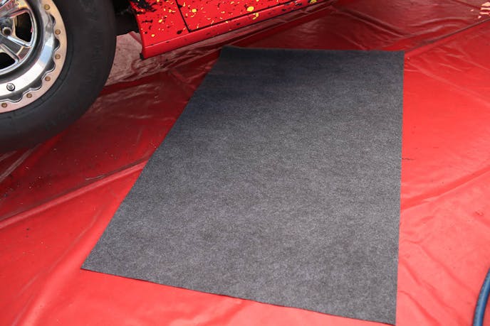 Our team uses a full-size pit mat at the track, but the Guard Mat has served as a perfect barrier when changing transmissions or converters to keep from getting unwanted fluid on the more expensive flooring mat. “The mat really does a great job of soaking up all the oil and fluid so I’m not rolling around in it, tracking it around, and making a mess,” says Goude.