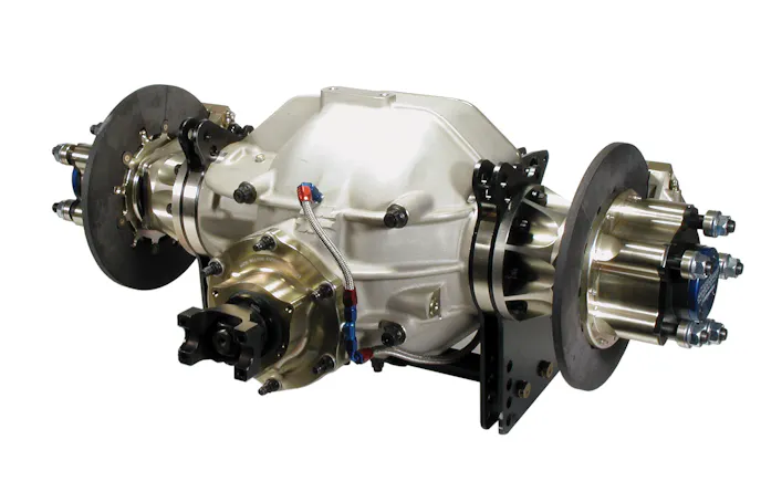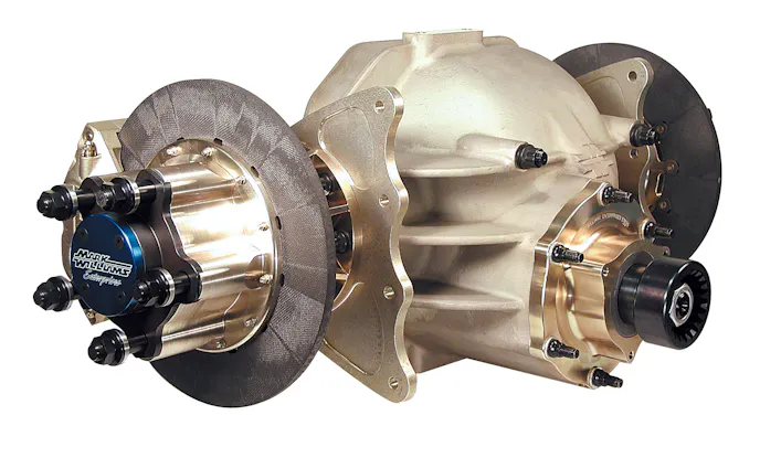 Highly respected driveline products manufacturer Mark Williams Enterprises took the 9-inch Ford to the next level by developing the industry’s first modular aluminum housing for the genre. Through use of CNC-machined components, the precise alignment of gears and axles assures optimum efficiency through mitigating performance-robbing friction. Interchangeable end bells facilitate a variety of housing widths and mounting options (solid or 4-link), as well as bearing sizes. The modular approach also facilitates using the housing in multiple vehicles and switching between 4-link and solid mounts.
