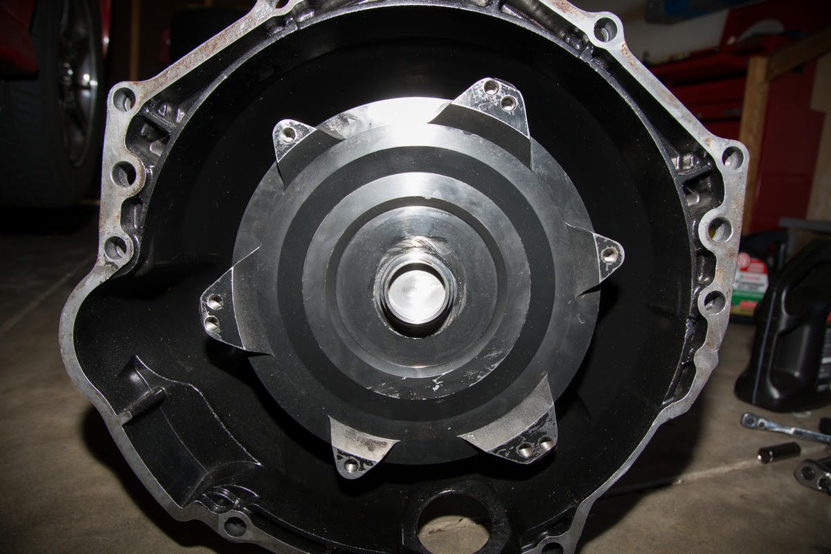 The ATI SuperStreet Master we used is a billet-faced torque converter that’s a direct-fit for the 4L60E & 4L65E transmission that came in GM cars and trucks. The great part about this converter is that ATI includes the pilot necessary to get the torque converter to fit on the input shaft with no additional shims. All you need to do is fill it with fluid and make sure you turn it until you hear the three distinct “clunks” and the converter is seated on the pump and ready to be bolted to the flexplate.