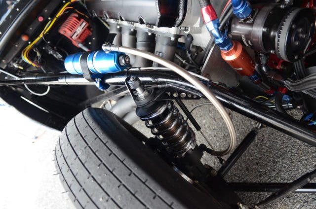 “We have worked very hard on providing the tuner with the ability to soften the extension and rotate quickly, or tighten down the extension and see very little drop out of the strut at launch. We have also worked on the compression side of the strut, so the car will track smoothly during the pass.  Each track has its dip, bump, or seam where the concrete and asphalt meet, and the car must ride these irregularities without the driver feeling any of it,” Saffell says.