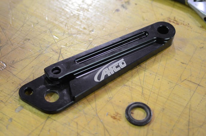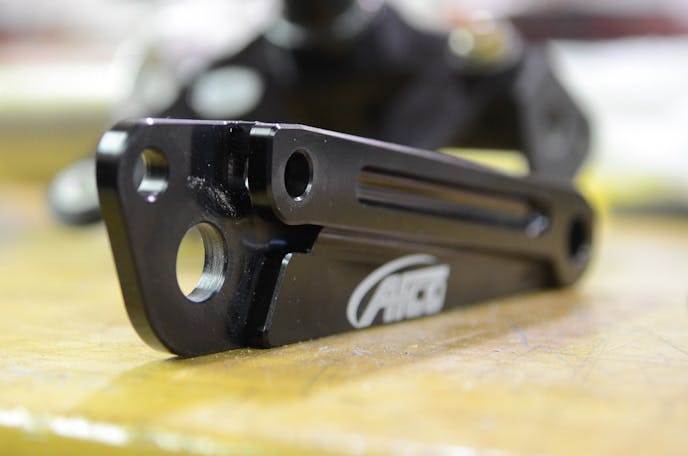 AFCO has beefed up its steering arm considerably, including where the tie rod attaches to the new struts, for extra rigidity.