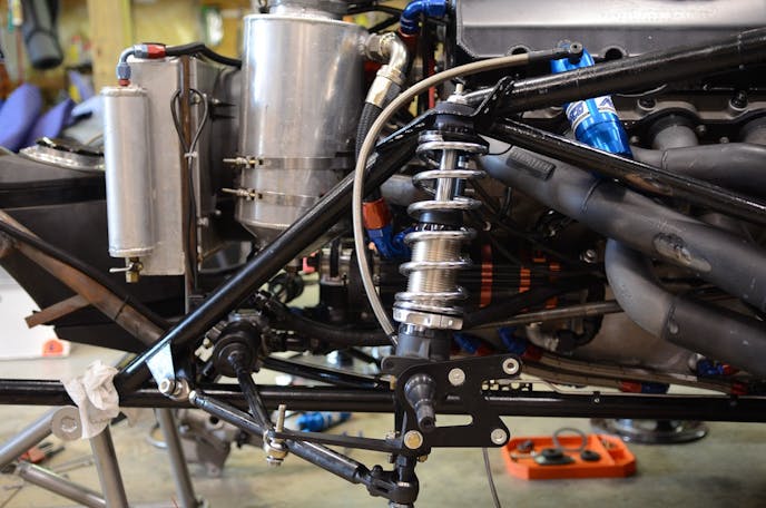 Saffell explains further how these canisters help the chassis car strut function so well.
