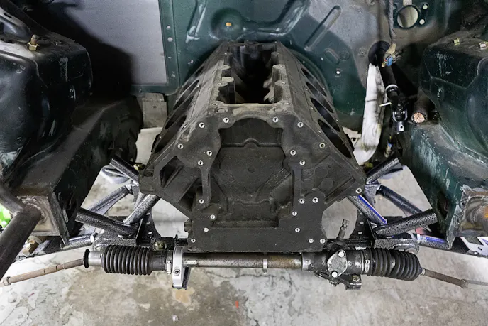 “We wanted our parts to be something your typical enthusiast could bolt right in and not have to change anything. For example, our K-member can use the stock power steering rack, power steering plumbing, and power steering pump with no modifications. If you want a quicker steering ratio, you can put a manual Pinto rack in the K-member without any changes, thanks to our modular platform. You can lower the engine down in the engine bay or change where it sits with a different set of mounts as well,” Zimmerman says.
