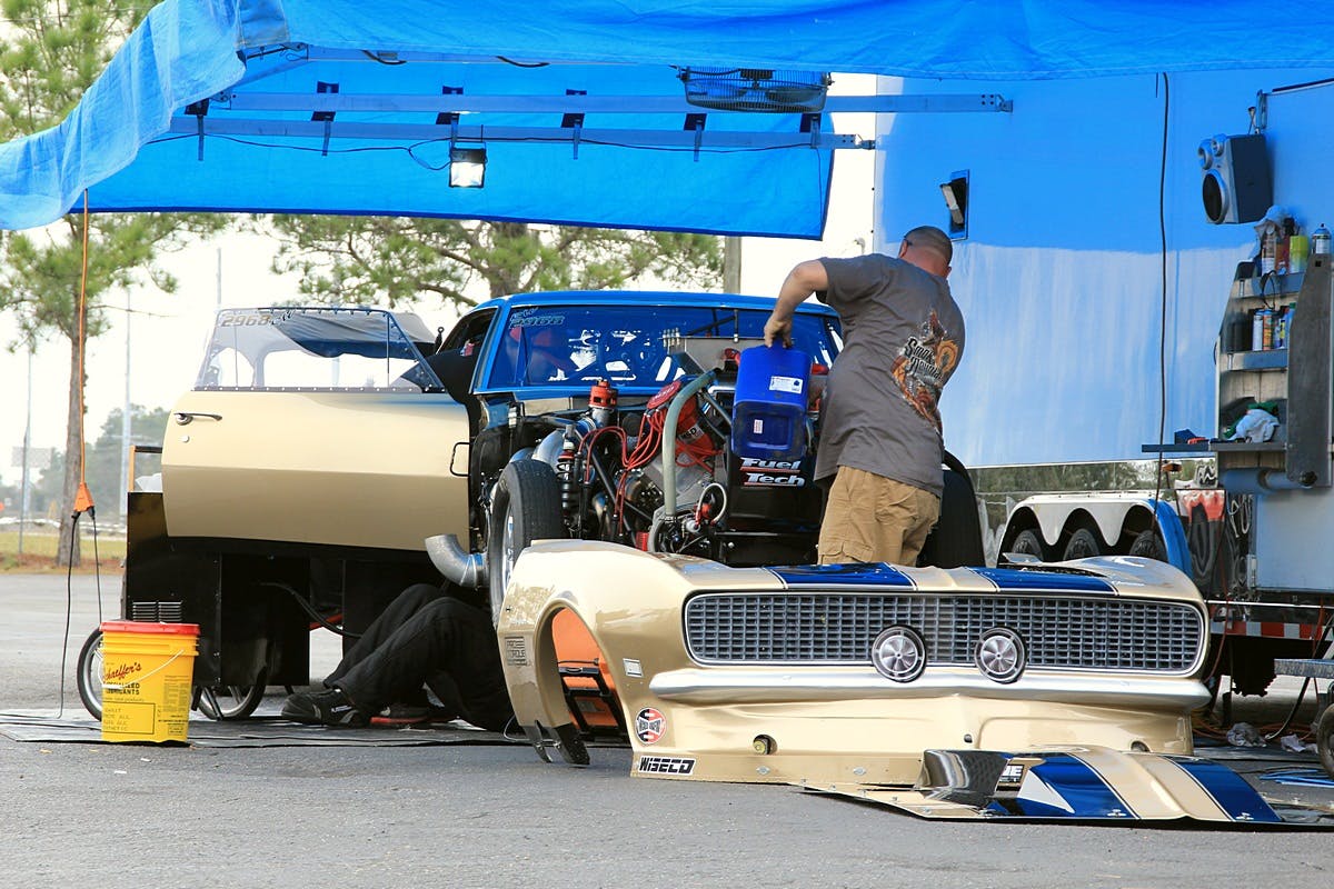 “A three-speed helps a lot of guys get down the track, because it doesn’t have the ratio drops that a Powerglide has. So it doesn’t upset the car on the gear change,” Beattie Jr. explains.