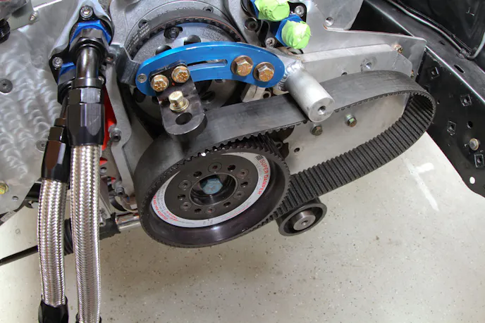 “I was building a ’98 Camaro, and I wanted to convert to a 30mm kit, which a 30mm cog is the same width as an 8-rib belt,” explained Schoneck. “We put the car on the dyno and within five pulls, it ripped the blower bracket, the blower, and the alternator bracket right off the motor.