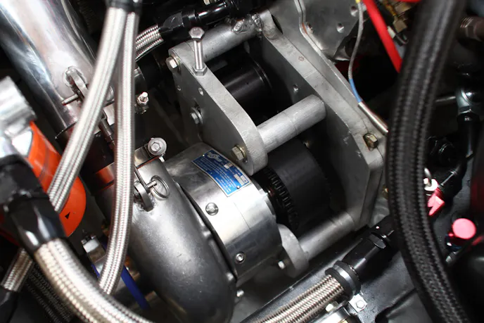 Schoneck continued, “At that point, I knew I had to cure the issue and build a reverse drive kit that used a 50mm cog belt for serious race-type engines, and the only good way to do it was the move alternator and come up with a killer bracket setup to support the blower. I also wanted the design to allow you to remove the belt without removing the head unit. This is something that you cannot do with any other reverse-type blower kit. With others, you have to physically remove the blower, and that can be as much as an hour job. With this one, if you broke a belt, you could change it on the side of the road in about five minutes.”