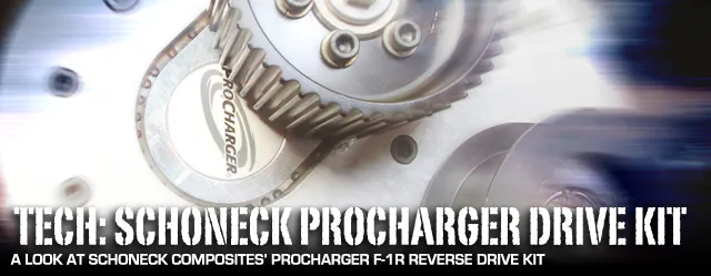 For anyone who’s ever owned, installed, tinkered with, or looked under the hood at a ProCharger supercharger — or any centrifugal supercharger for that matter — on a street car, you know that it’s pretty common that the inlet faces toward the firewall. This is a perfectly valid scenario for a street machine that’s necessitated by a lack of space from the motor to the radiator, but as any racer can attest, horsepower is king. Since airflow is horsepower, that means taking advantage of any and every opportunity to make the most of a particular power adder. This is the reason why manufacturers like ProCharger offer their blowers in a reverse drive configuration and why such third-party accessory manufacturers as Schoneck Composites produce complete kits to make the reverse drive combination a reality.