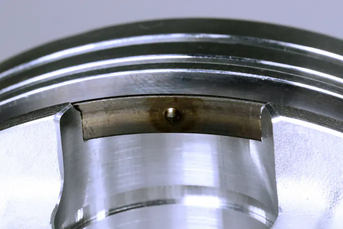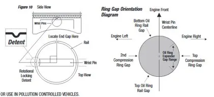 Recommended practice for installing an oil ring support rail is to lightly deburr both edges of the gap and then carefully wind the ring down into the oil ring groove taking care not to scratch the piston. The dimple should be positioned toward the bottom, so it can stub its rotational travel against the cut in the ring groove. It will have freedom of movement in either direction until it contacts the cut. Under no circumstance can the support rail end gap overlap, or it will jam the ring in the bore. A typical gap runs from .020 to .100-inch. A larger gap is inconsequential in most cases.