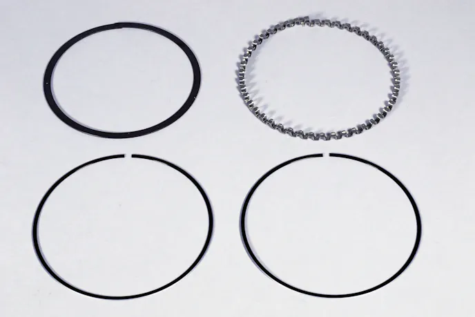 Support rails are wound tighter with their tension focused inward to snugly grip the back of the oil ring groove. Their only function is to stabilize the oil ring pack and prevent it from coming undone. Support rings often overlap and may have to be ground to fit. In some cases, they will have a large gap built in. The gap may be perhaps .100-inch or so and this is not seen as a concern by piston engineers since the lower oil ring rail cannot fall into such a small gap.
