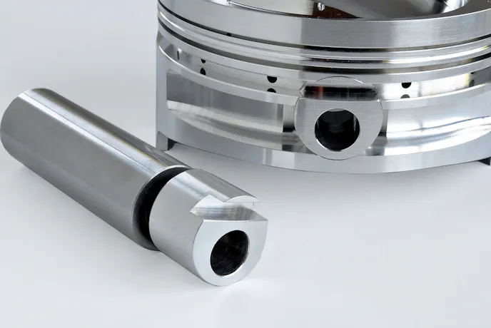 Some racing pistons avoid the need for an oil ring support by using aluminum pin bushings or buttons. These replace the traditional pin locks and are used in pairs with one fitted at either end of the piston pin. They are designed to float with some degree of movement. They are also machined with a flat surface on one side that corresponds to the oil ring groove when installed. The flat surface matches the bottom of the oil ring groove and supports the oil ring without requiring a support rail.
